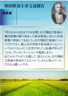 かかし村まつり実行委員の方々からも、中学生が地域の行事に参加し、一緒になって片付けまで手伝ってくれたことに、大変感謝してくださいました。高齢化が急速に進む山田地区において、中学生への期待や役割が大きいことを、参加者全員が改めて実感したようです。