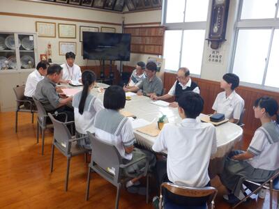 10月10日(金)、第3回学校運営協議会を開催する中で、学校運営協議員の方々と生徒会執行部による意見交換会を行いました。