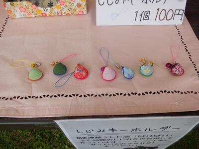 また、テント内において、本校生徒数名で製作した、しじみキーホールダーとレジン(アクセサリー)も販売し、その収益を赤い羽根共同募金に寄附させていただきました。