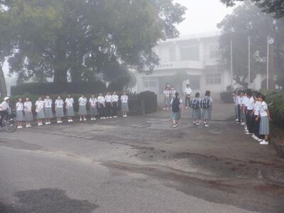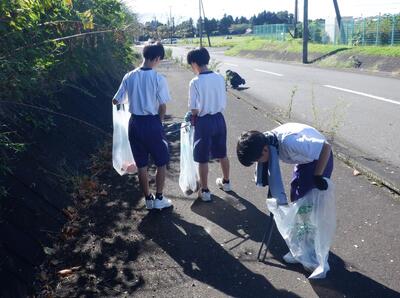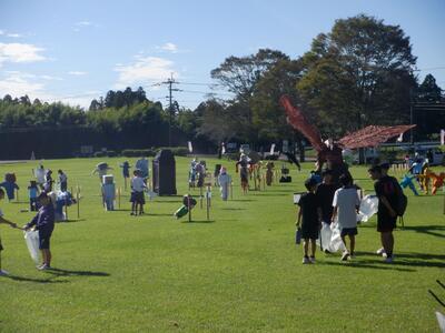 10月12日(日)、かかし村まつりの翌朝、会場内のゴミ拾い活動に、全校生徒の約3人に1人にあたる62名と職員8名が参加しました。