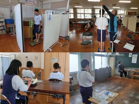 生徒は体操服に着替えて、それぞれの検査場所を学級ごとに順番に回り、検査を受けました。自信の成長の度合いを知る上で、特に身長と体重の計測には関心が高かったようです。昨年の自分と比べて、どれぐらいの成長があったのでしょうか?