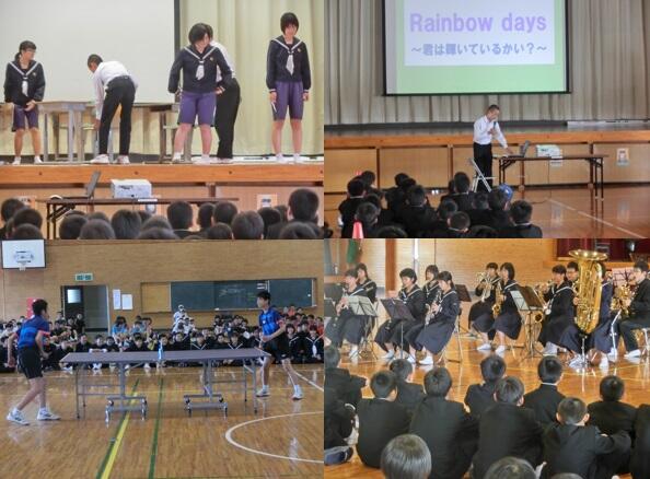 生徒会活動や1日の生活の流れについて、生徒会役員が寸劇を交えながらわかりやすく新入生に説明しました。1年生にとっては、口頭や文書による説明よりはるかにわかりやすかったようです。また、部活動紹介では、各部とも工夫を凝らした紹介で、新入部員を1人でも多く獲得したいという思いが伝わってきました。1年生は、興味のある部活動の練習を見学し、自分に合った、そして3年間続けられる部活動を選択できるようにしましょう。