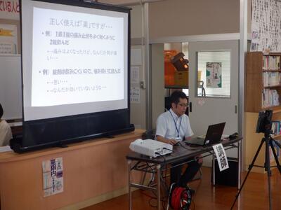 7月11日(金)、都城保健所 衛生環境課から講師をお招きして、図書館からのオンライン配信による薬物乱用防止教室を実施しました。参観日に併せた実施でしたので、保護者10名も参加してくださいました。
