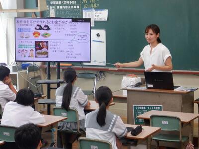 本校では、夏休みの課題として、「みやざき弁当の日」写真展に向けた弁当作りに取り組んでいます。今回の授業を通して、栄養バランスの整った献立のアイデアが浮かんできたのではないでしょうか。どんなお弁当ができるか、楽しみにしています。