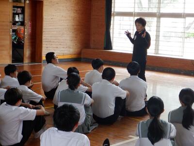 7月17日(木)、ハートスペースMから講師2名をお招きして、第3学年を対象にして性に関する講話を実施しました。今回の演題は、「望ましい交際のあり方について」とし、デートDVについての理解すること、中学生らしい交際について考えることができること、また、よりよい人間関係を築くとともに望ましい行動選択ができるようになることを主な目的としました。
