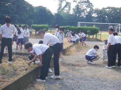 朝の除草ボランティア(生徒会活動)