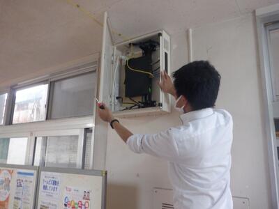 7月17日(木)、山田地区においては、午後1時頃から急な大雨が降り始め、遠くで雷の音が聞こえてきました。その後、午後3時頃、学校近くに落雷があり、校内のインターネット回線やネットワーク環境が使用できなくなるという事態が起こりました。その後、システムナインがすぐに来校していただき、壊れた基盤等を交換してくださったおかげで、午後6時頃には無事に復旧することができました。