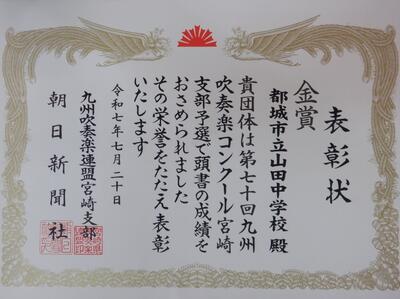 また、金賞の中の上位8校にも選ばれ、27日(日)に行われる代表選考会に進むことになりました。九州大会出場をかけて、さらなる高みを目指してくれることを期待します。