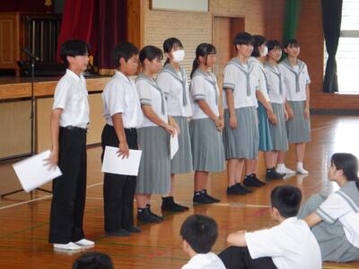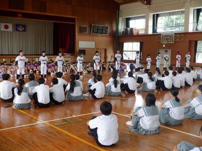 6月11日(水)、全校集会を開催し、中体連を含む各種大会等における表彰及び「いのちの講話」を実施しました。