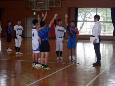5月30日(金)、都城地区中学校総合体育大会に参加する選手を激励するために、壮行会を開催しました。各部活動の主将による力強い選手宣誓のとおり、山田中学校の代表であるという自覚をもち、最後まで諦らめずに、全力でプレーしてくれることを期待しています。
