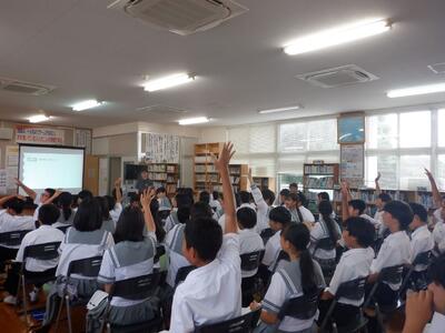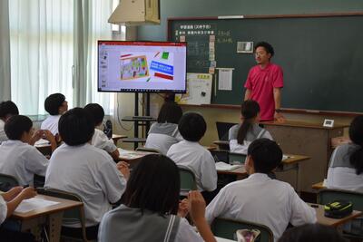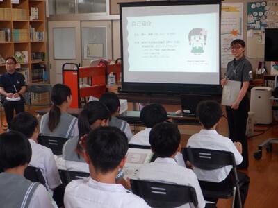 6月5日(木)の総合的な学習の時間において、都城市役所商工部商工政策課のご協力のもと、第1学年を対象にしたキャリア教育を実施しました。