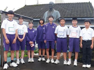清掃活動終了後、石川理紀之助翁の胸像前に立ち、山田地区に残してくださった功績に感謝するとともに、地域の方々から、今でも愛されていることを改めて実感することができたようでした。