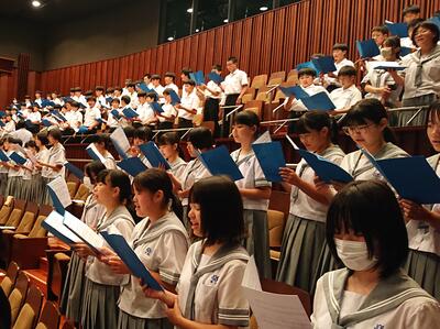 また、山田中、庄内中、山之口中の3校合同で合唱したMrs. GREEN APPLEの『僕のこと』も、優しくて励まされる歌詞が心に伝わってくる素晴らしい歌声でした。10月の紫峰祭における、各クラスの合唱も期待しています。