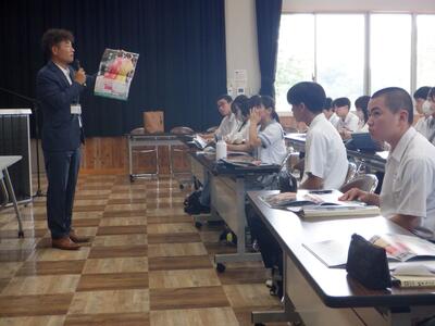 今回は、市内の5つの企業から、計7名の講師をお招きして、生徒たちに、各社の仕事の内容やその魅力を紹介していただくとともに、講師自身の職業観や仕事のやりがい、さらには、キャリア形成の過程を語っていただきました。