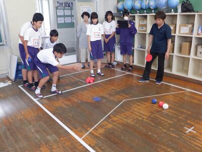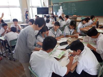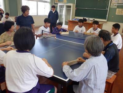 テーマは、「地域に目を向ける~中学生としての自分を知るとともに、自分の身近な地域を知ろう~」です。講話「山田地区における地域福祉活動について」や地域の方々(民生委員)との意見交換などを通して、山田地区の現状と地域が抱える課題を深く理解することができたようです。また、軽スポーツ交流(ボッチャ等)なども実施し、りんどう福祉会の方々と楽しい時間を過ごすことができました。