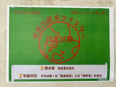 優秀な学級は表彰され、満点者には本校オリジナルの「世界の国名マイスター」が認定授与されます。