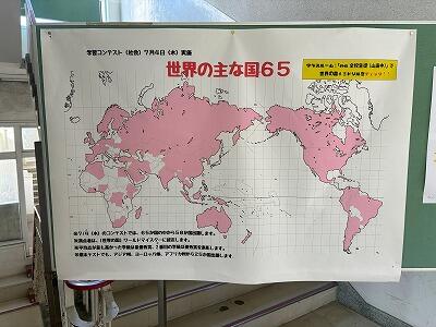 今回は、「世界の主な国65」と題し、全校生徒が同じ問題に挑戦しました。