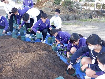 校内の環境美化のために、また、卒業式に向けて花を植えました。