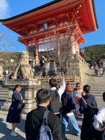 京都駅を出発して、全班、チェックポイントを通過しました。班の仲間と協力し、計画にしたがって活動しています。天候にも恵まれ、みんな楽しそうです。