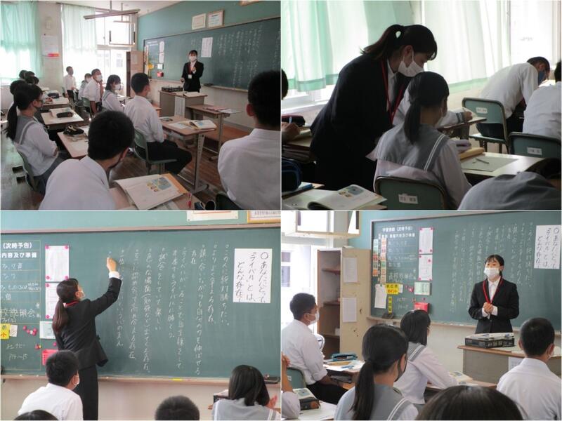 実習生は今週金曜日までです。生徒たちの名前も覚えてくださり、たくさん会話している様子も見られます。あと2日で寂しいですが、がんばってくださいね。