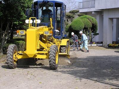 この日は朝8時に来校され、校舎周りの駐車スペースに砂利入れ、凹凸を無くした上に転圧までしていただきました。また、テニスコートも同様に整備していただきました。学校には、重機などの機械もなく、整備する技術をもった職員もいないため、このような地域の方のご協力は大変ありがたく思います。職員、生徒とも感謝しております。