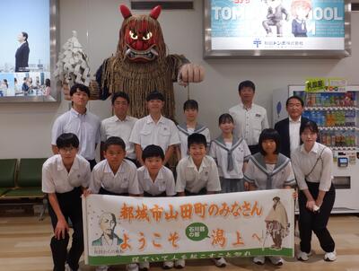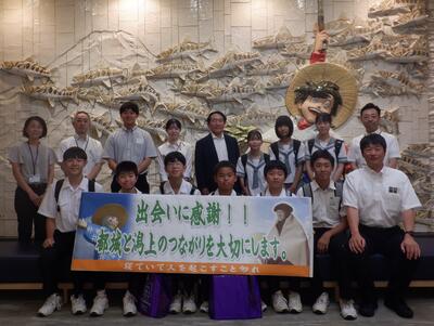 今回の参加者9名は、潟上市内の羽城中、天王中、天王南中における授業体験や生徒会交流を通して多くの気付きや学びを得ることができたようです。また、理紀之助翁が築かれた両地域の絆がさらに深まると同時に、それぞれの地域の文化や歴史を分かち合うことで、新たな友情も芽生えました。