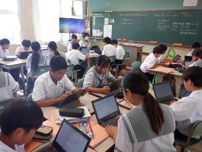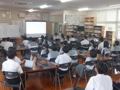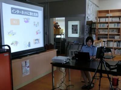 7月3日(木)、都城警察署から講師をお招きして、非行防止教室(ネットリテラシー)を、熱中症予防のため、学校図書館から各教室へのオンライン配信で実施しました。