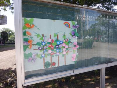 本校の掲示板にも、向日葵と朝顔がたくさん咲いていますので、学校にお立ち寄りの際は、ぜひご覧ください。