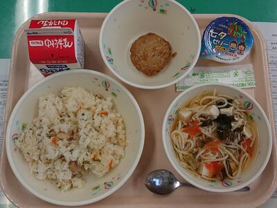 7月7日(月)は、七夕の日です。学校給食も七夕にちなんだ献立が提供されました。中でも、魚そうめん汁に入っていた人参は、星(★)の形にくり抜いてあり、七夕の夜空を思い起こさせてくれました。