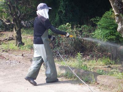 そのような中、環境整備員の方が、除草剤の散布を行ってくださいました。手作業による草抜きだけでは、なかなか追いつかない状況でしたので大変助かりました。これで、蛇に噛まれる危険が減ることと思います。