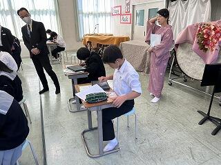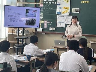 生徒は、地域の施設や会社を経営する方のお話を真剣に聞き、積極的に質問をしていました。意識の高まりが感じられる大変意義のある授業でした。