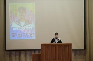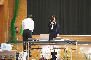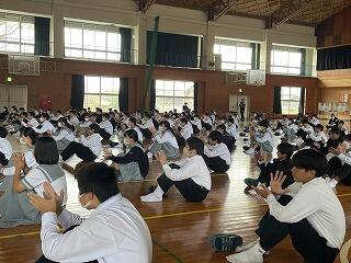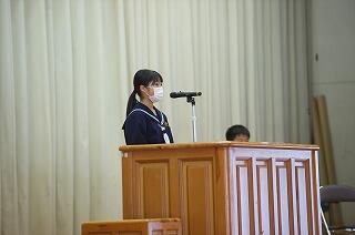旧生徒会長の東さんは、「自分たちがやり残したことを後輩の皆さんに託したい。生徒全員が、生徒会活動に意識をもって取り組んでほしい」と述べました。また、新生徒会長の原田さんは、「これまでの役員の皆さんに感謝している。生徒の意見を大切にしながら活動していきたい」と述べました。