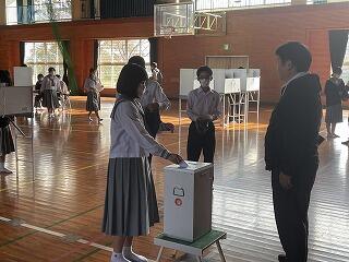 生徒会役員改選に向けて、立会演説会と投票を行いました。