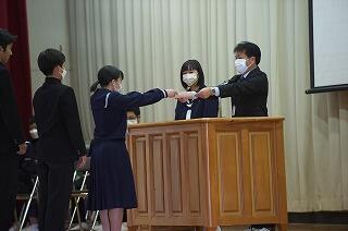 これまで生徒会活動の運営に尽力してきた皆さんに感謝状を授与し、新役員の皆さんに任命状を授与しました。