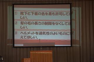 なお、本年度、生徒会が主体となって取り組んできた「校則の見直し」について、改正点の発表がありました。