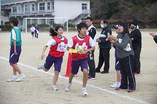 駅伝では、自分の学級に誇りをもち、たすきを必死につないでいました。