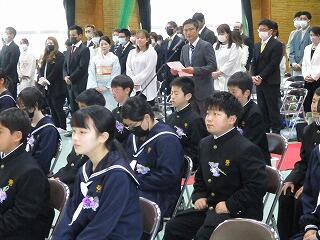 マスクの着用も緩和されたため、卒業生は入退場や卒業証書授与ではマスクを外して行いました。インフルエンザの罹患者も見られたため、卒業生以外は終始マスクの着用をお願いしました。(ご協力ありがとうございました)