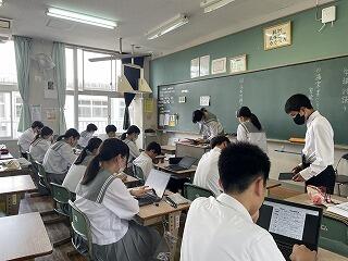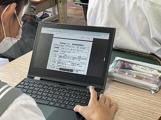 今日は生徒総会に向けての学級討議でした。クロームブックを活用して、生徒会会則の見直しや、専門委員会活動計画の確認などを行いました。