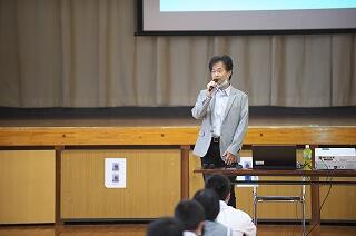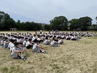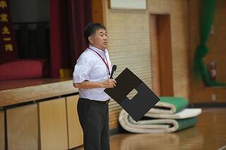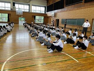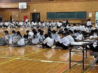 卓球、陸上競技、男子ソフトテニスの表彰をした後、「いのちの講話」をしました。
