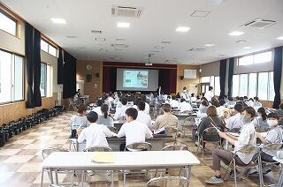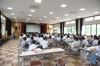 本校生徒を対象とした「歯に関するアンケート」の考察の後、むし歯や歯周病になる原因や対策について貴重なお話を聞かせていただきました。予防や治療をしっかりとやって、健康な歯を保っていきたいものです。