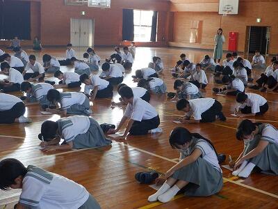 英語では、ALTの先生といっしょに、楽しく授業を行っていました。生徒は積極的な発言や発表で、ゲームを取り入れた授業(文法の復習)を盛り上げていました。