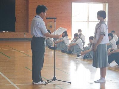 壮行会終了後に、第1回スピーチコンテストの表彰を行い、