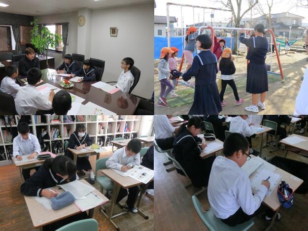 訪問したのは、りんどう福祉会、あさぎり園、けねじゅ苑、七つ星、ほほえみの里、霧峰園、中央保育所、万ヶ塚保育所、谷頭こども園の山田地区内の9ヶ所です。訪問して、施設、必要な資格、職業観などについて質問し、メモしたことを学校に戻ってまとめました。保育園を訪問した生徒の中には、園児に包囲され、遊び相手になったとか・・・。