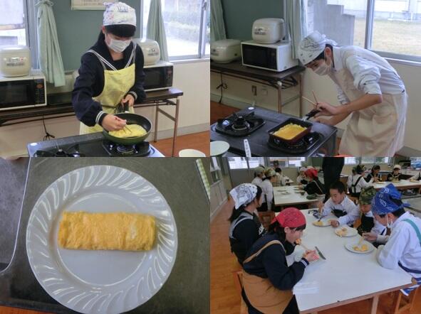 調理後は、班内で試食をし合って、楽しい時間を過ごしていました。私も試食をさせてもらいましたが、なかなかおいしい卵焼きが多かったです。これを機会にぜひ、家庭でも料理のレパートリーを増やしていって欲しいものです。
