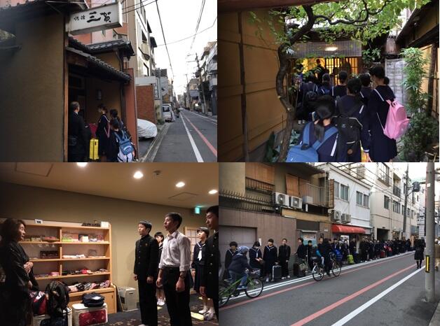 今日で修学旅行が終わりますが、2泊お世話になった旅館の方へ感謝のことばを述べて出発しました。旅館「三賀」の方々、ありがとうございました。