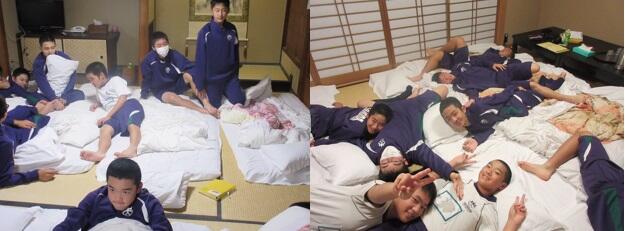 ちょっとむさ苦しく感じますが、写真は男子が部屋でくつろいでいる様子です。この時間は班長会を開き、本日の反省や翌日の自主研修の確認をしているところです。この様子だと、就寝時間を守ったかどうか心配ですね。