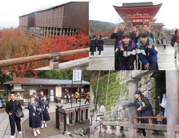 ただ今、京都市内班別自主研修中です。写真は、清水寺の様子です。心配された雨もそこまで降っていないようで、順調に研修が進んでいるようです。写真ではうまく伝わらないかもしれませんが、紅葉がとてもきれいです。清水の舞台が改修中というのがちょっと残念です。