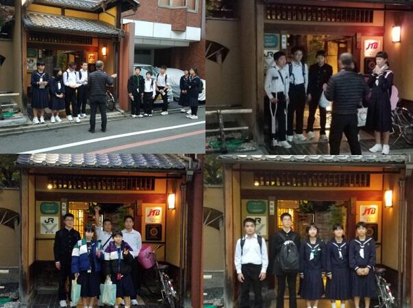 生徒は、この後、夕食やお風呂の前に、明日の自主研修に備えて、バス停のチェックも兼ねて、散策に出かけます。明日の京都の天気は、曇り、昼過ぎから時々雨、最低気温は12度、最高気温は17度と今日より寒さを感じるようです。雨も、今日の山田町ぐらいだったらいいのですが・・・。ともかく、今日はお風呂に入って、晩ご飯をしっかり食べて、よく寝て、明日の自主研修に備えましょう。