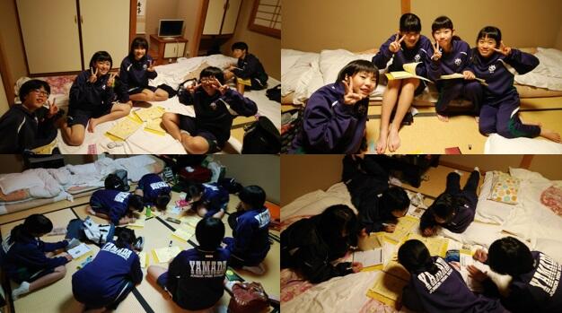 話題は、昨晩のことに戻りますが、写真は女子会の様子です。女子会と言っても、食事会とか宴会とかをしているわけではなく、班長会・部屋長会を終えて、1日の反省や次の日の行動予定や連絡事項を確認しているところです。