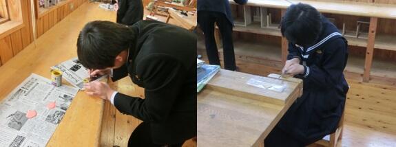 12月4日(火)、3年2組の生徒が技術の実習で金属加工に取り組みました。実習としては、最後の方で、ほとんどの生徒が作品を完成させていました。